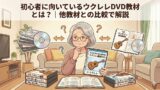 ウクレレ教材の種類(無料動画・教本・DVD)を比較し、初心者がどれを選ぶと上達しやすいのかを整理。挫折しやすい理由や、DVD教材のメリットもわかりやすく解説します。
